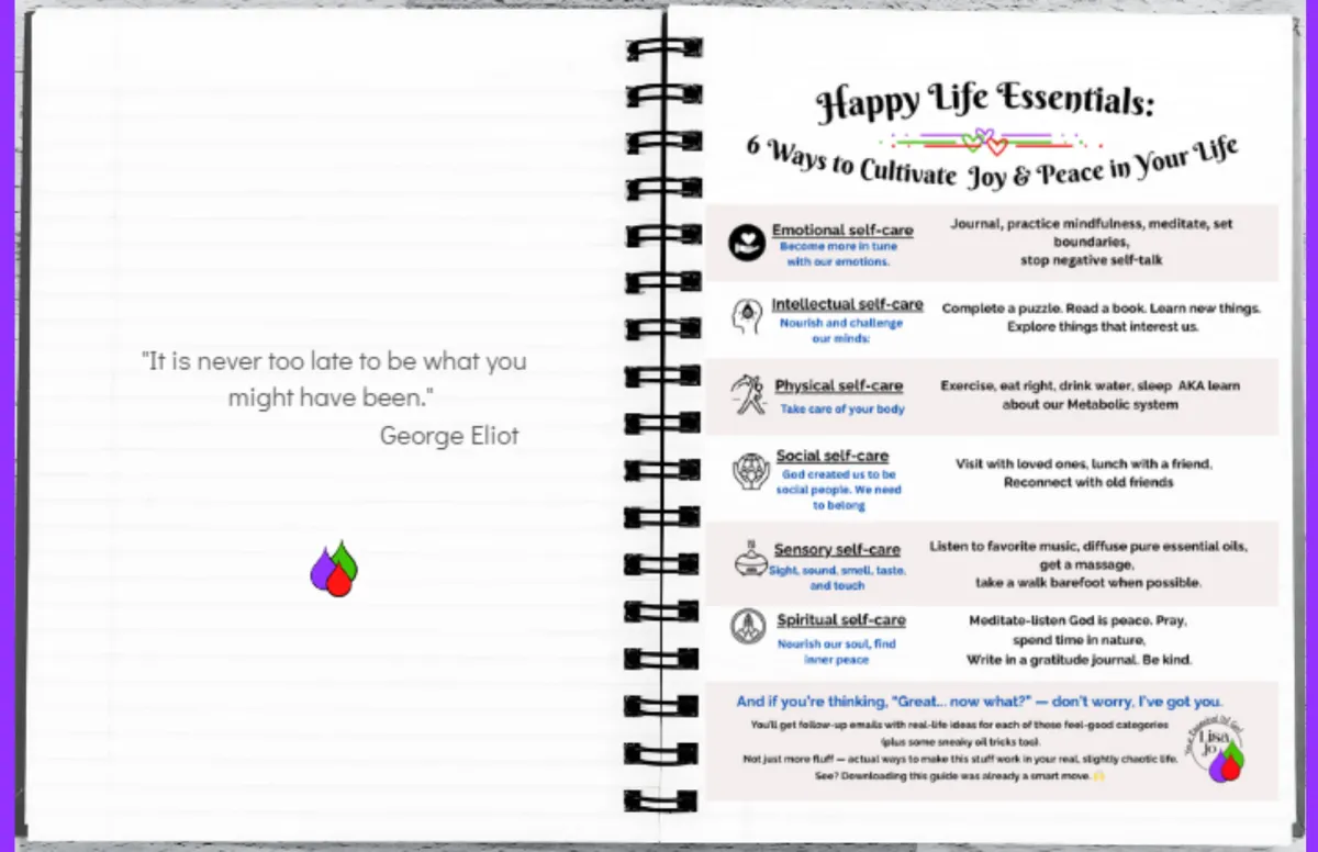 Get your free guide with 6 essential elements that work together to help you find joy and peace.
